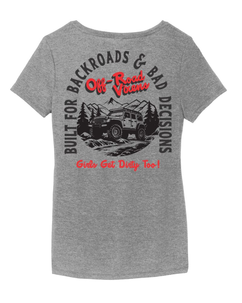 Some of the best stories start where the pavement ends. The Backroads & Bad Decisions V-Neck Tee, featuring a trail ready Jeep is made for women who don’t need a plan—just a full tank and a sense of adventure. With a flattering v-neck fit and a lightweight, everyday feel, this tee pairs effortlessly with trail days, road trips, and whatever questionable decisions come next, it’s easygoing comfort with a little rebel energy built in.