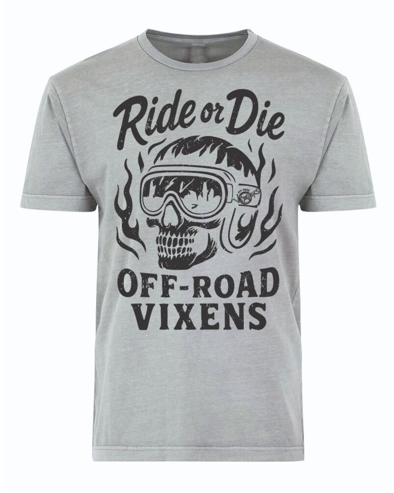 Turn up the heat and your throttle in our Raise Hell Vintage Tee—a rebellious statement piece that blends comfort and grit. Crafted in a vintage silver shade, this tee features our signature Ride or Die skull graphic on the front and Raise Hell Ride Fast flames and pistons artwork on the back. It’s a throwback to old-school moto attitude with a fresh Off-Road Vixens edge. Whether you’re tearing it up off-road or just vibing with your crew, this tee keeps you comfortable, fierce, and ready for the ride.